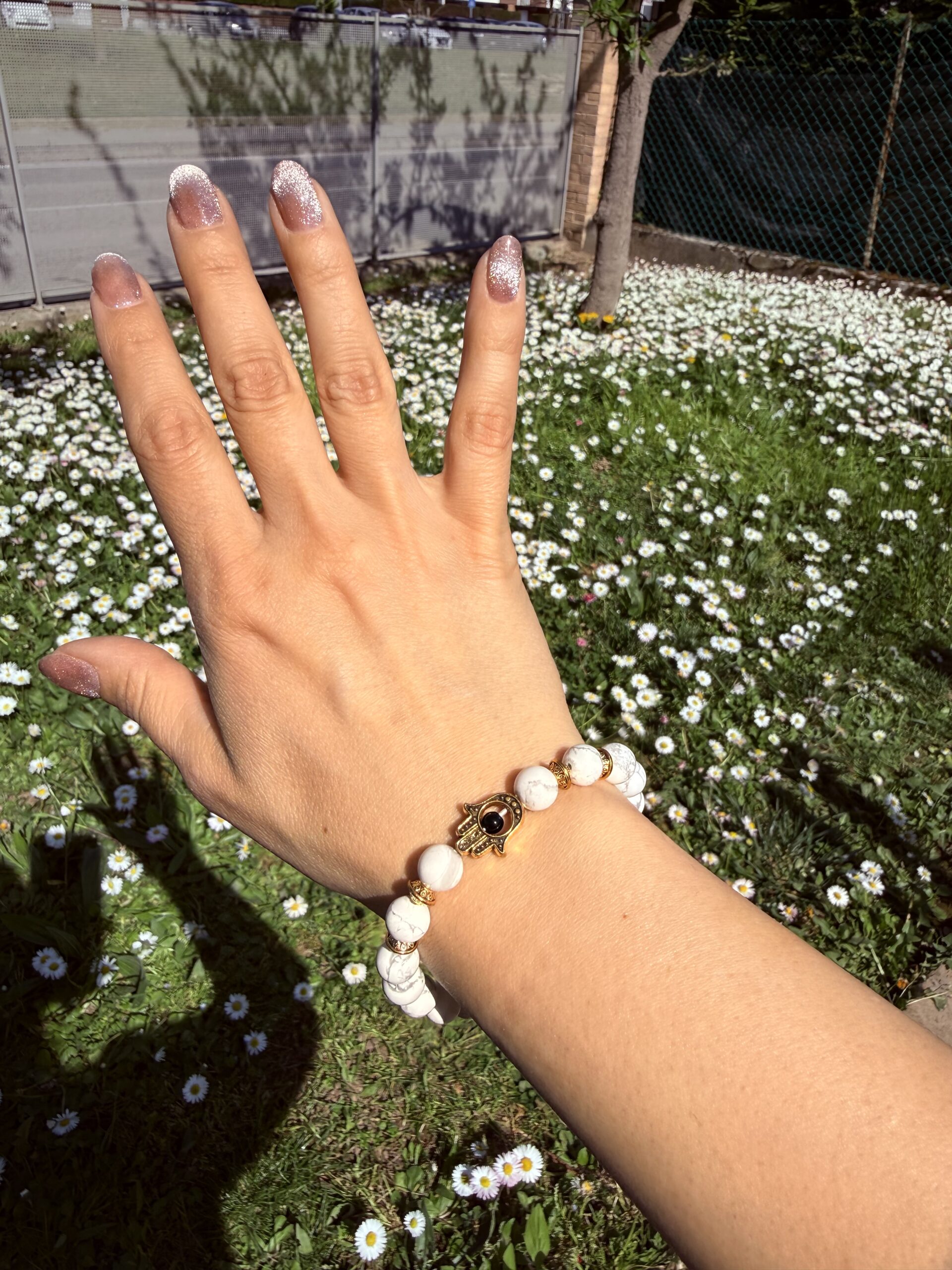 ✧ Bracciale Howlite con Mano Hamsa