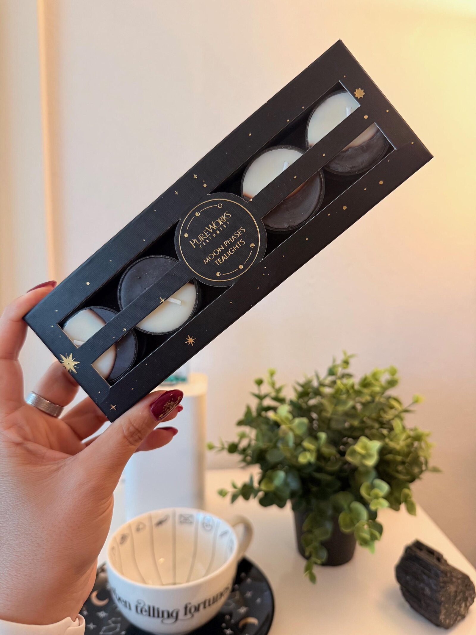 Le fasi lunari tessono un arazzo celeste che rispecchia i cicli della vita e della coscienza. Accendere questi lumini significa connettersi al ritmo dell’universo, lasciando che la luce della luna crescente, calante e piena guidi i tuoi rituali, meditazioni e momenti di introspezione.